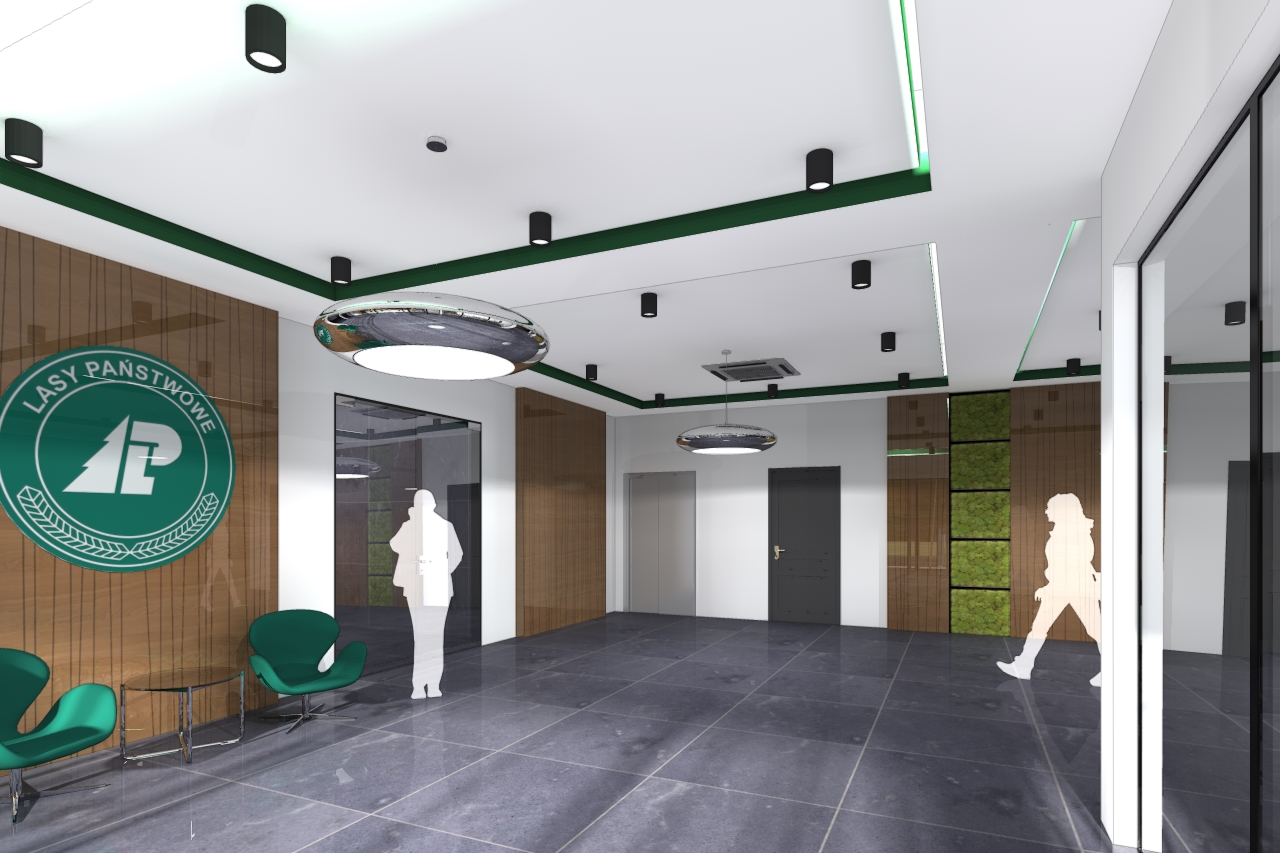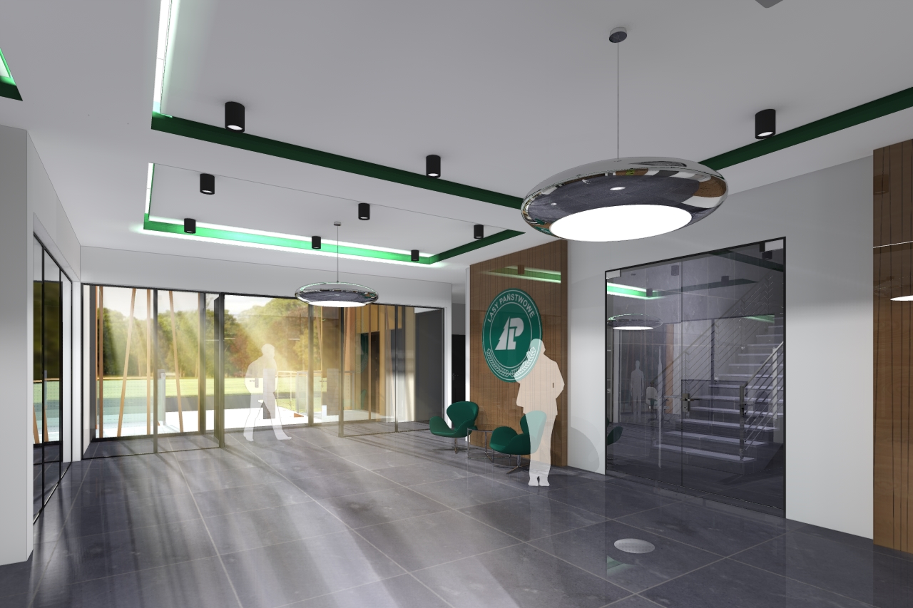 Budynek biurowy administracyjny zlokalizowany w Bedoniu- oddział Lasów Pastwowych . Projekt koncepcyjny powstawał w latach 2016