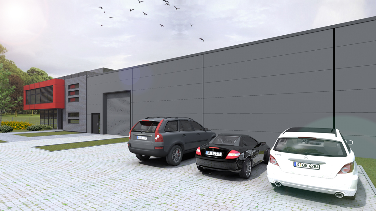 W budynku zaprojektowaliśmy 180 m2 biur i 400m2 pow. magazynowej